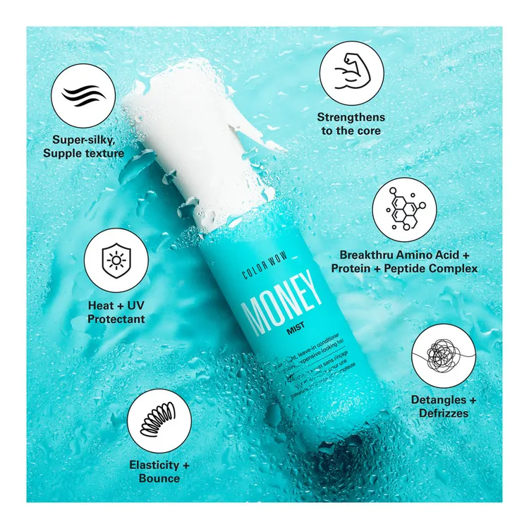Color Wow Money Mist is a powerful detangler that reduces breakage. This bottle strengthens strands to support healthy growth, moisturises, and defrizzes for smooth, silky, luxurious texture. The ultralight, penetrating mist won’t weigh hair down and provides heat and UV protection. Suitable for all hair types, this featherlight formula is infused with the brand’s proprietary Baolyzed Amino Complex, which includes rice bran, baobab, and amaranthus extract to strengthen and increase bounce while locking in long-lasting hydration. It instantly transforms the look, feel and healthy quality of all hair types and textures.
