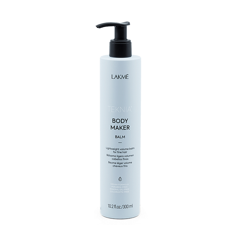 TEKNIA Body Maker by Lakmé takes care of fine hair by creating a feeling of thickness, volume and natural shine. This range reconstructs fragile hair so it is recharged and more resistant to breakage. TEKNIA Body Maker Balm provides texture and elasticity to limp hair while moisturising and strengthening from within. Vegan Microproteins from Organic Soy and Rice rebuild the hair fibre, making it more resistant to breakage. This natural alternative to keratin rejuvenates lifeless hair while adding body. Body Maker Balm is 100% vegan and free of parabens, mineral oils and colourants. Create a full-bodied, airy and lightweight texture with this volumising solution.