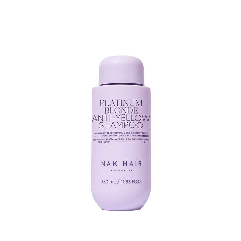 NAK Signature Platinum Blonde Anti-Yellow Shampoo eliminates strong yellow, gold or brassy reflects.