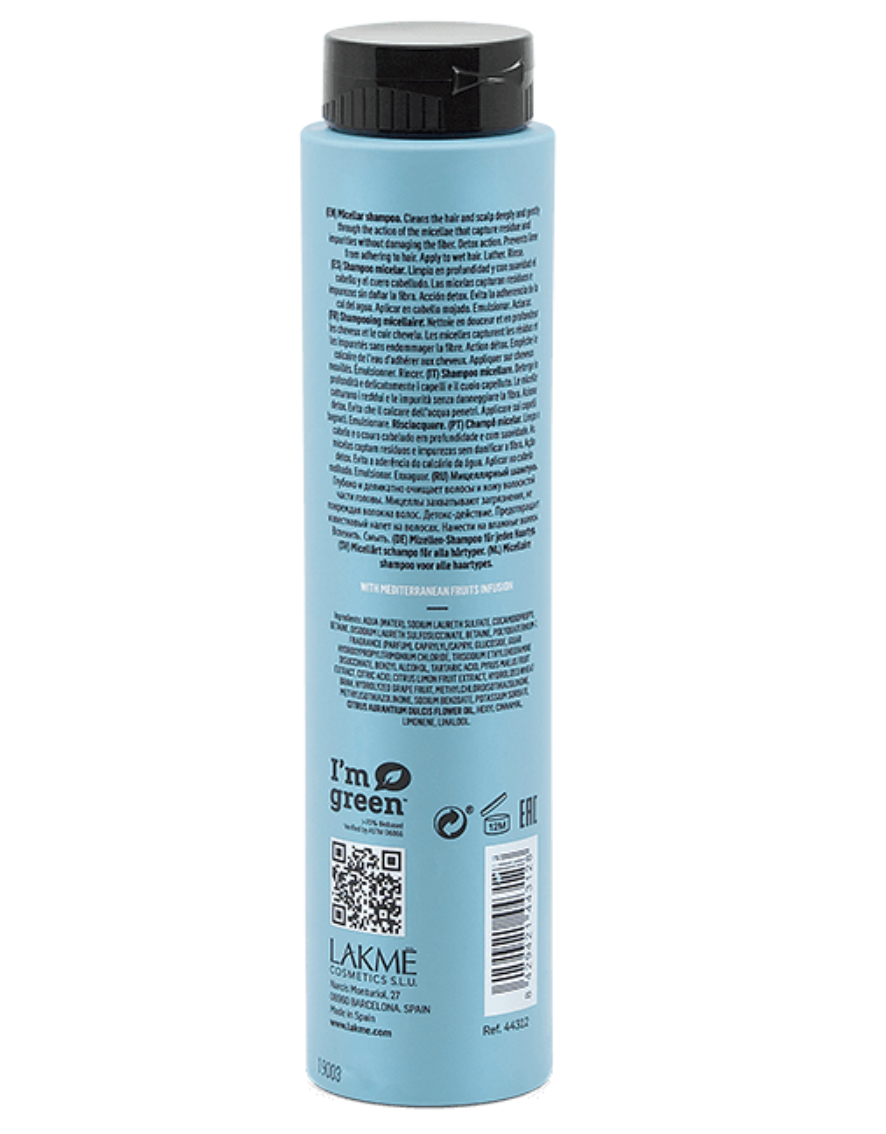 TEKNIA Perfect Cleanse Shampoo by Lakmé intensely cleanses the hair and scalp, protecting it from impurities, grease and minerals found in hard water. This vegan formula uses micelles to achieve a deep and delicate clean that is soft on the hair fibre; leaving its structure untouched. An infusion of Mediterranean Fruit Acids (lemon, grape and apple) work to detoxify and protect the hair from hard water while boosting its natural hydration. The combination of these fruits provide anti-limescale benefits while they moisturise. Perfect Cleanse Shampoo is free of parabens, mineral oils and colourants, while its antibacterial properties protect the hair and scalp. Achieve softer, shinier hair with this powerful, deep cleansing solution.